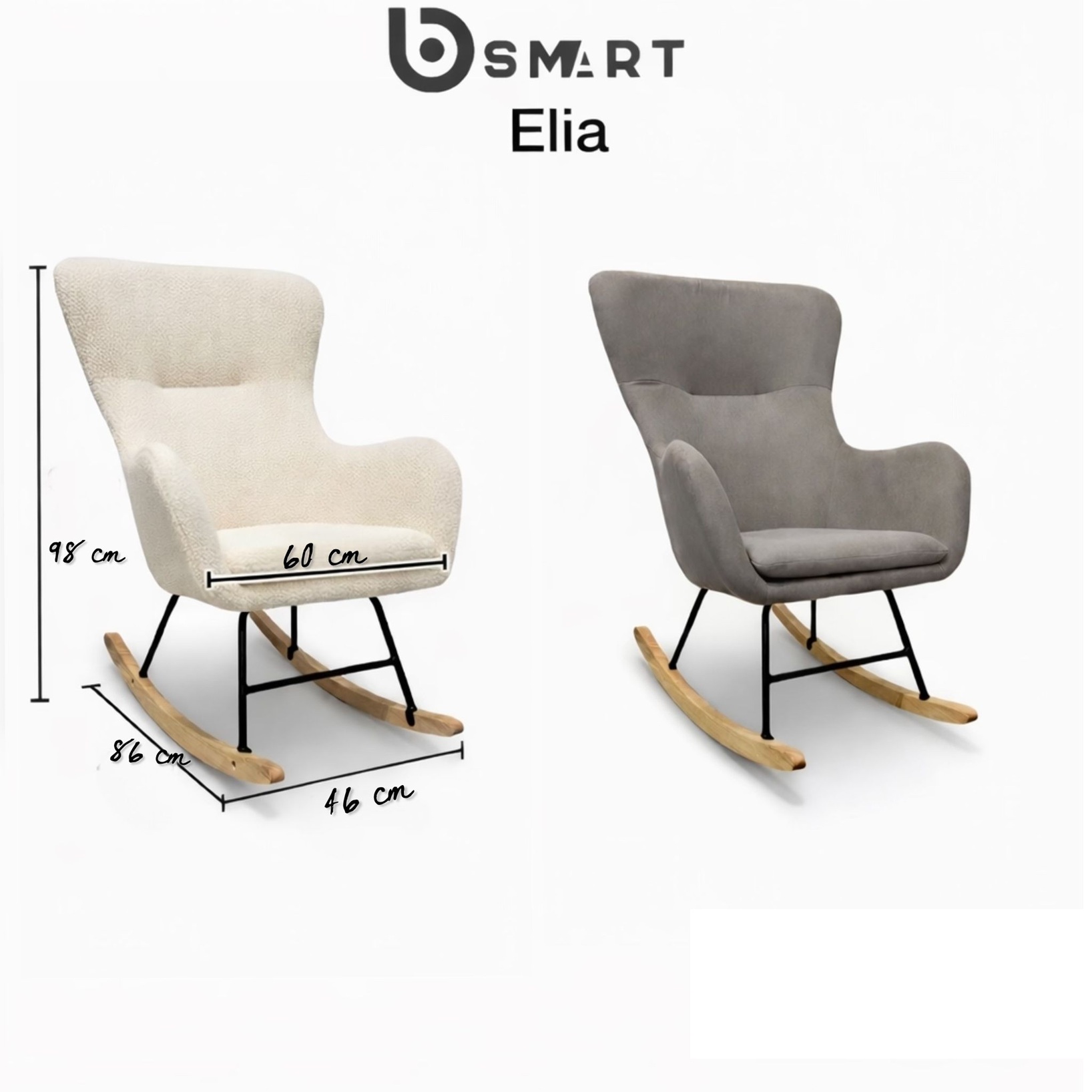- כורסת הנקה דגם Elia משלבת נוחות גבוהה, עיצוב אלגנטי ואיכות חומרים מעולה, ומתאים במיוחד להנקה, להרגעת תינוקות בלילות, לקריאת סיפורי לילה ולרגעי מנוחה במהלך היום.