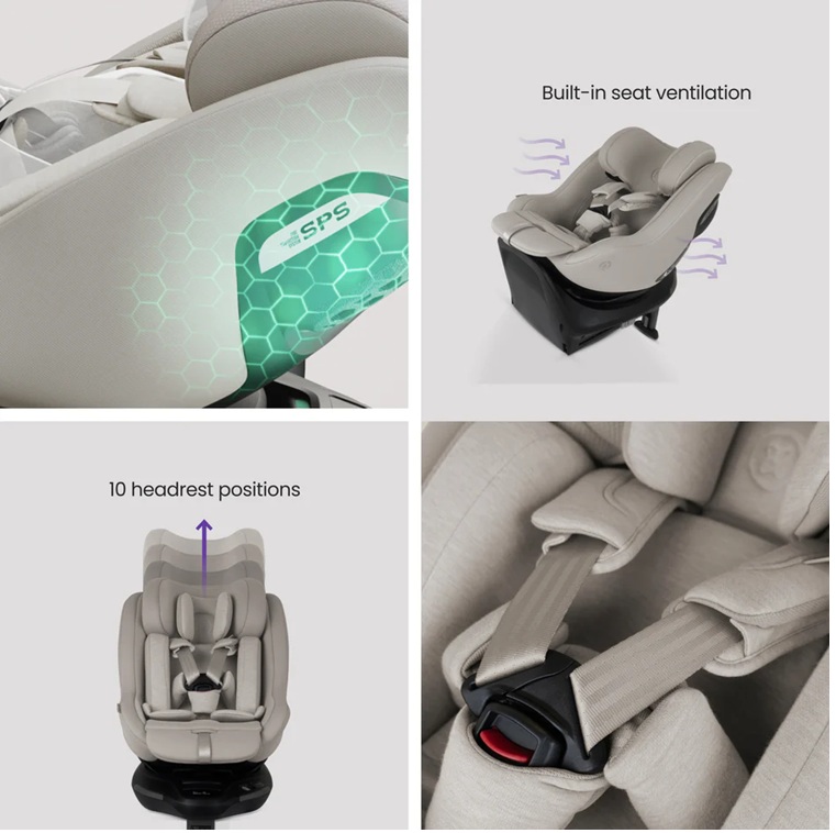 - המושב מצויד במערכת שכיבה פנימית ייחודית המובילה את השוק, המעניקה לילד תנוחת נסיעה אופטימלית גם בנסיעות ארוכות. החיבור לבסיס מתבצע באמצעות ISOFIX, עם סיבוב חלק, מנגנון AgeLock למניעת שימוש לא נכון, והכנסה/הוצאה קלה וללא מאמץ.