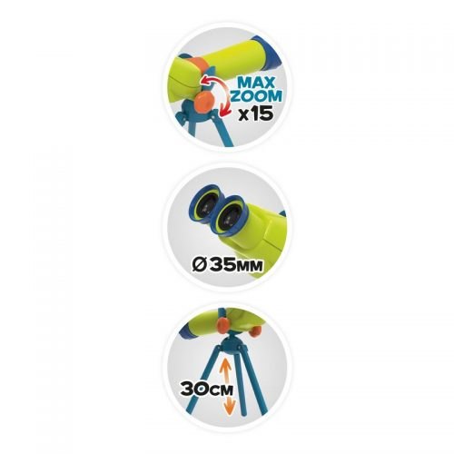 - בערכה טלסקופ המעוצב במיוחד לילדים. הטלסקופ מגדיל פי 30, ובקוטר 35 מ"מ.